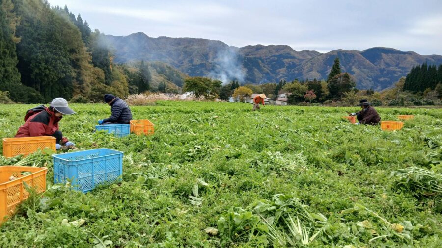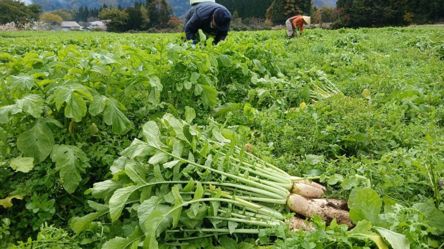 信州の伝統野菜「戸隠大根」の収穫が無事に終わりました。